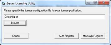 The Server Licensing Utility is a simple Windows application that uses License Configuration Files to request a license key from the purchased Runtime licenses. The Server Licensing Utility registers that Runtime license on the system where your application will be running. This utility can be used by developers for testing, by your deployment team, or by your end users to register their Runtime license.