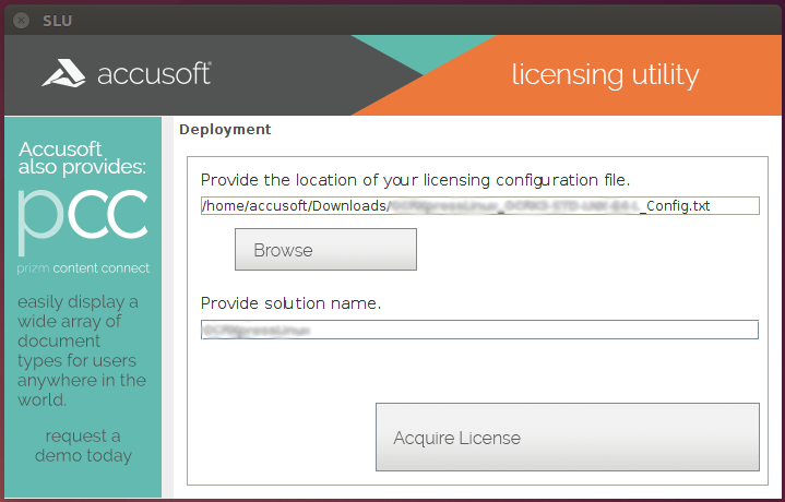 Next, you will need to go to the Accusoft Licensing Center to obtain your Evaluation license. The URL to this website is provided by the SLU, https://licensing.accusoft.com/v1/WebDeployUser/WebDeployUser.aspx. You have two options for getting this URL: