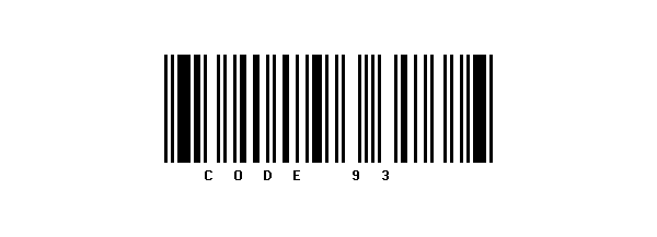 Code 93 is a bar code symbology which encodes 43 data characters (0-9, A-Z, 6 symbols, and Space), four shift characters, and a unique start/stop character. Code 93 derives its name from the fact that every character is constructed from 9 modules arranged into 3 bars with their adjacent spaces.