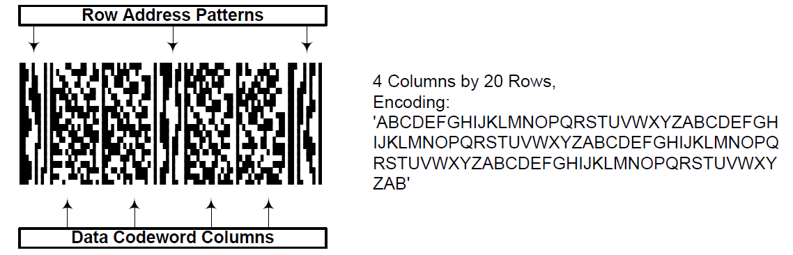 Unlike PDF417, MicroPDF417 may only be printed in certain pre-defined combinations of number of rows, number of columns, and number of error correction codewords, up to a maximum of four data columns by 44 rows.