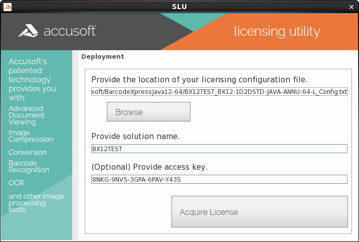 The Server Licensing Utility (SLU) uses License Configuration Files to request a license key from the purchased Runtime licenses. The SLU registers that Runtime license on the system where your application will be running. This utility can be used by developers for testing, by your deployment team, or by your end users to register their Runtime license.