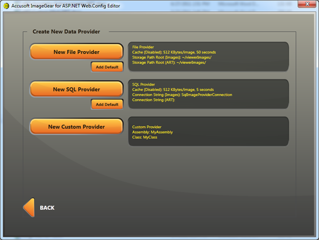 To create a new SQL provider, select New SQL Provider to launch a set of three dialog boxes that guide you through customizing an SQL Provider: