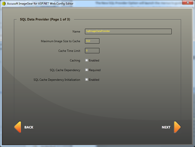 | SQL Cache Dependency Initialization | Indicates whether SqlCacheDependency should be initialized by the image data provider. SQL dependency requires one time initialization. If this initialization has already occurred in your application, then the initSqlCacheDependency attribute should be set to false. See the example below for information on how to perform the initialization in your application. |