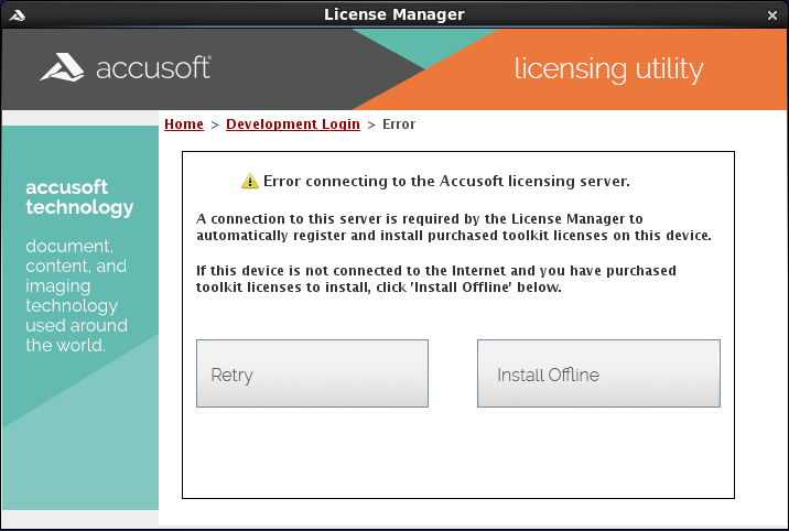When the development system is not connected to the Internet during registration, as is the case in some defense or financial institutions, registration is only slightly less simple.