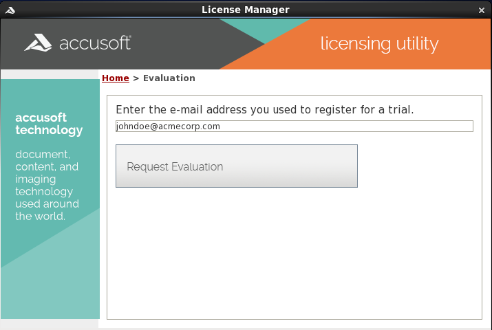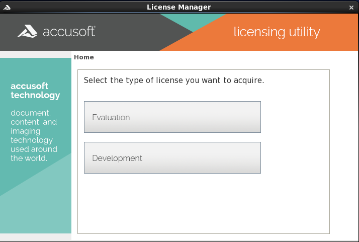 ImageGear License Manager is a GUI application that is used by a developer or end-user to register and activate Evaluation and Development (Toolkit) licenses on their system.