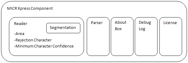 To maintain optimum recognition results, MICR Xpress provides the ability to modify debugging, perform segmentation, select reject characters and establish minimum acceptable confidence values. These characteristics are depicted below.