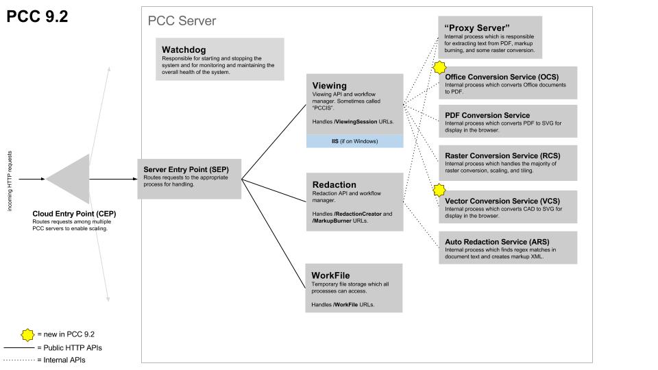 The following sections of the documentation will provide more detail about each of the services that make up the system. The Server Entry Point (SEP) exposes the RESTful API for use by the PCC Viewer and your application. The other services do not expose an API that is intended for direct use.