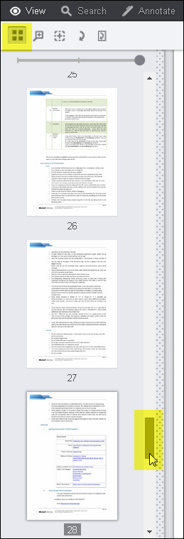 - To return to the original page, click on the Thumbnail icon to view the pages within the document and you can easily scroll back to the page you were on: