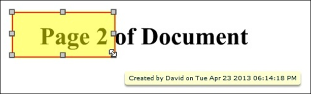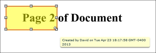 The creation date of the annotation/redaction object is also shown and will, by default, show the local time of creation. By adding the "showOffsetFromGMT" flashvar and setting its value to "yes", users will see the local time and its offset from GMT, giving the user information about when, in absolute time, the object was created. For example, showOffsetFromGMT: 'yes'.