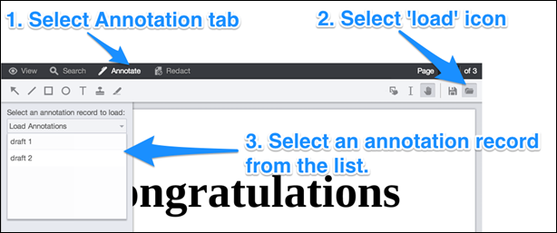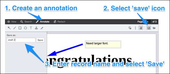 After adding annotations to a document, you can save the annotations for later use by following the steps shown below: