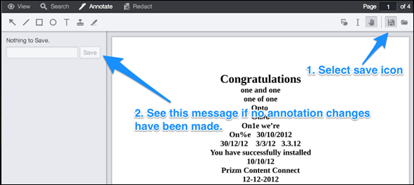 If no annotations have been added, modified, or deleted from the loaded document, the Nothing to Save message appears: