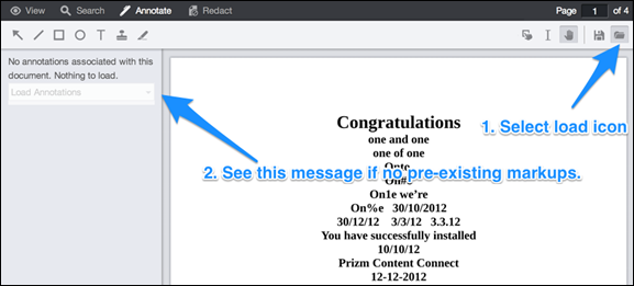 If no pre-existing annotation files exist for the loaded document, the message shown below appears. Also, the annotation file selection list will be disabled: