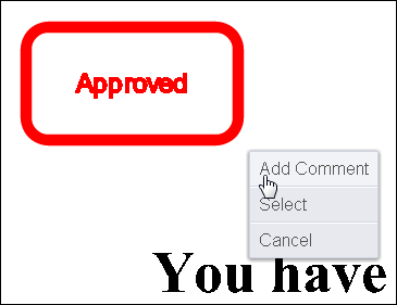 - Hover over the mini-context menu and the following options are displayed: Add Comment, Select or Cancel: