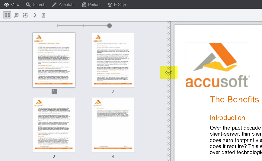 - You can also click on the dotted area to resize the Thumbnail pane. Click on the dotted area and drag it to the right or left as desired: