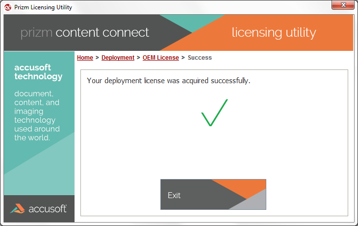 This topic describes how to use an OEM Deployment license for Prizm. OEM Deployment licenses are special Deployment licenses that must be specifically negotiated with Accusoft in order to obtain them. These licenses unlock the functionality of the product as defined in the contract and do not expire.