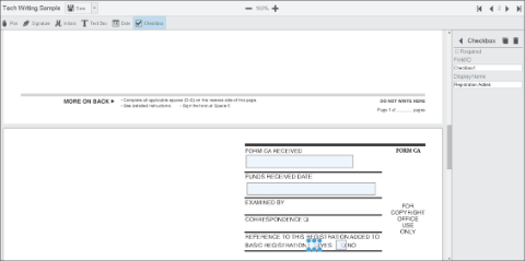 1. To add a checkbox, click on the Checkbox button. Scroll to the location on the template you want to add the checkbox and draw a box.