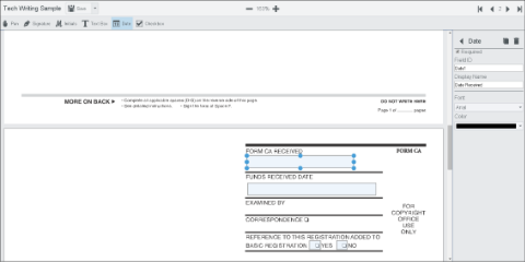 1. To add a date box, click on the Date button. Scroll to the location on the template you want to add the date and draw a box.