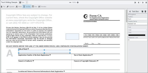 6. If you want to add additional text box fields to the template, click on the Duplicate icon and draw the text box fields as desired.