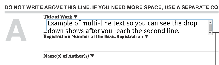 - Type in the required or optional text. Note that if the text box allows multiple lines of text, you will see a scroll-bar appear on the right side of the text box as you are typing: