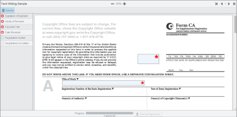 - Click on the first item in the list. In this example, click on Signature of Examiner. The form focus moves to the Signature field.