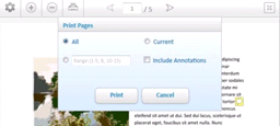 The HTML5 viewer enables users to print documents with specific page ranges and with or without annotations.