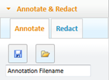 To save an annotation from the PCC viewer’s user interface, select the Annotate & Redact tab, specify an annotation ID in the input field and click the Save icon.