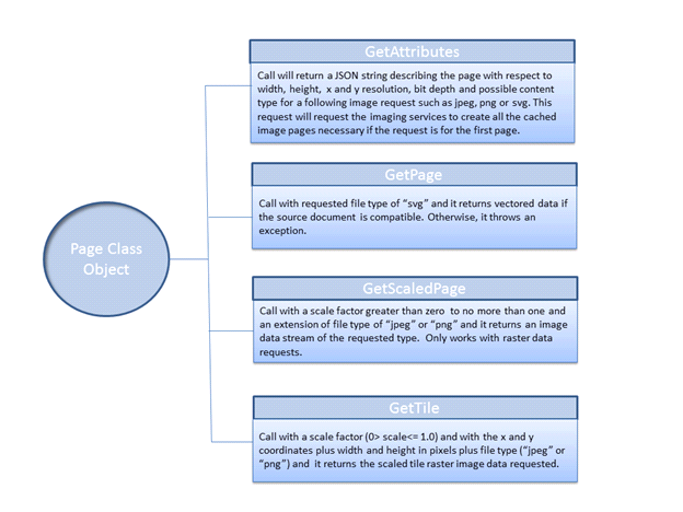 The HTML5 Web Tier samples instantiate three class objects from this namespace which perform most of the necessary operations requested by the web client PccViewer control. The class object PrizmContentConnect in PccViewerServices assembly services the license operation in the GetLicense class and is invoked by the client PccViewer control to establish license validity. The other two objects are Document and Page which acquires document information and image data streams as requested by the web client control. The GetAttributes, GetImage and GetImageTile classes instantiate the Page object for their functionality. The DocumentInformation and GetDocumentAttributes classes use the Document class object for their functionality. Essentially, the web tier samples perform the task of acquiring or parsing the data from the web RESTful URL requests and pass the information into the PccViewerService objects which communicates with the imaging services and returns the requested data. This module performs the steps as outlined in the User Guide section on the Using Prizm > Architecture > HTML5 topic of this document.
