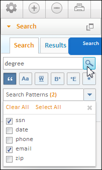 1. Select the Search Patterns drop-down and select SSN and Email. Click on the Magnifier tool:
