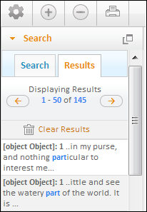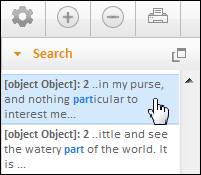 1. To go to a specific search results page, click on any highlighted item in the Results list: