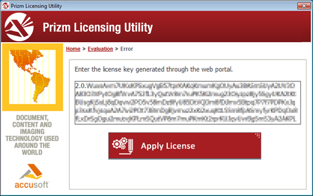 Once back to the Prizm Licensing Utility running on your evaluation machine, you can paste the license information into the awaiting text area.