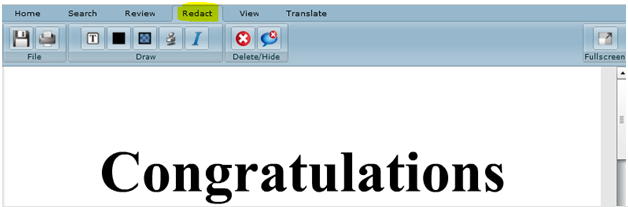 When licensed for redactions, the viewer user interface will include a tab named “Redact”. This requires that the pages specified in Settings.xml work correctly (see User Guide > Integrating with Your Application > Understanding Settings.xml).
