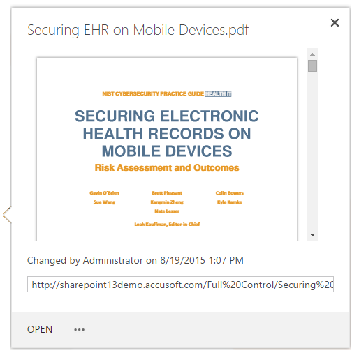SharePoint’s native "file callout" (below) renders a scrollable document preview.