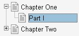 In the above example, Chapter One is a child of Root, Chapter Two is a sibling of Chapter One, and Part I is a child of Chapter One.