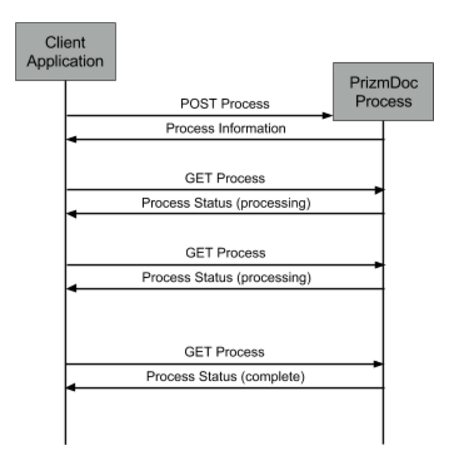 Several PrizmDoc Server operations are represented as asynchronous work processes. These processes are created by a request containing configuration information and immediately begin their work. Prior to completion, information about the process can be requested in order to determine its current state. Processes eventually reach a terminal state, at which point either the process was successful and the output is available or the process failed and is in an error state. After completion, processes do remain available for a short time, but since their work is done, they are soon removed by periodic maintenance. The lifetime of a process is configurable within its creation options.
