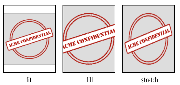 autoSize(String) When set, the image will be automatically sized to fill the page (any value provided forscale,horizontalAlign, andverticalAlignwill be ignored). Possible values:"fit"- Image will be scaled to be as large as possible while still completely fitting within the page. The aspect ratio of the image is maintained."fill"- Image will be scaled to be large enough that the entire page is covered by the image. Some of the image may fall off the edge of the page, but the entire page is guaranteed to be covered by some part of the image. The aspect ratio of the image is maintained."stretch"- Image width and height will be independently resized so that the image width and height are the same as the page. The aspect ratio of the image is ignored.