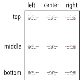 verticalAlign(String) Determines the vertical position of the watermark. Default is"middle". Possible values:"top"- Text will be vertically anchored to the top of the page."middle"Text will be vertically anchored to the middle of the page. (default)"bottom"- Text will be vertically anchored to the bottom of the page.