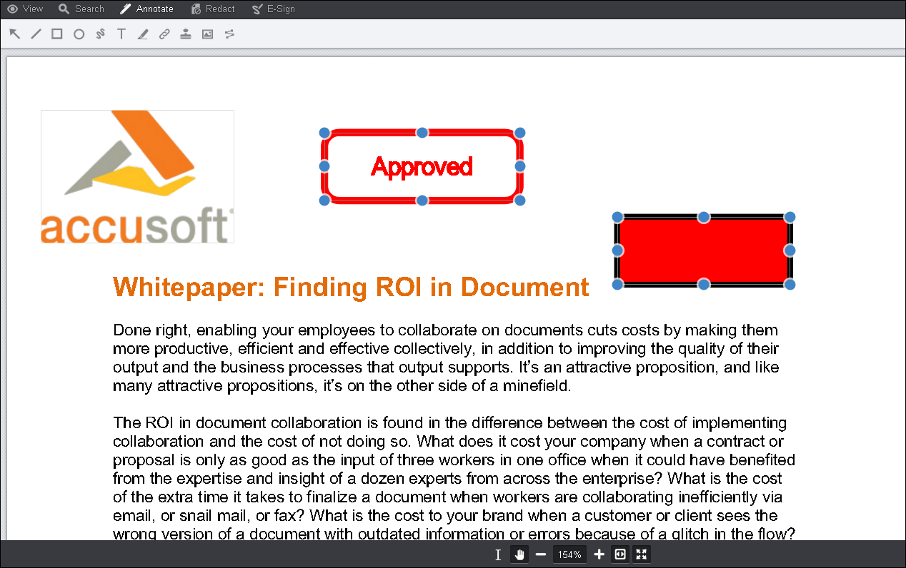 When adding annotations programmatically using the addMark method to distant pages of a large document, or if you are not sure if your annotation object will straddle the page width and height boundaries, it is recommended that you use the requestPageAttributes method to obtain width and height of a page. This will help you to remain within the confines of the image rectangle when specifying width and height of the annotation’s dimensions (rectangle or start point and end point).