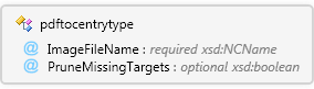 | ImageFileName | xsd:NCName | required | | | The name of an entry in the image file list. The named file must be a PDF file. If the file is not a PDF file, or the PDF file has no TOC, this entry is removed from the TOC tree. |