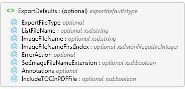 The ExportDefaults element contains export dialog defaults to override those set by the user in the export dialog.