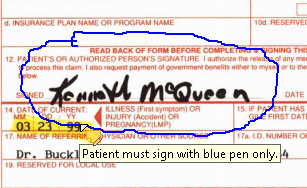The following example shows a freehand annotation, with a 4-point, blue line and a note added: