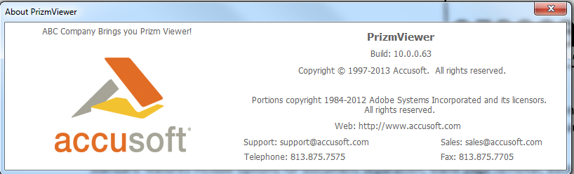 About Box Description = ABC Company Brings You Prizm Viewer 10!