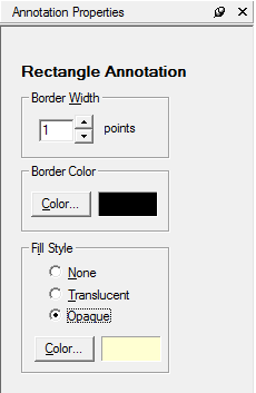 The Annotation Properties docking window displays the current settings for the selected annotation and allows you to change those settings: