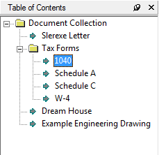 The Table of Contents docking window displays the Table of Contents associated with the PDF, CAD, or list file: