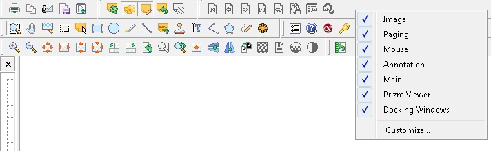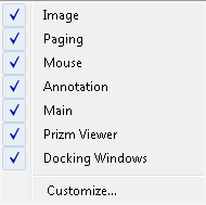 - Right-click on the toolbar you want to modify. The menu list displays: