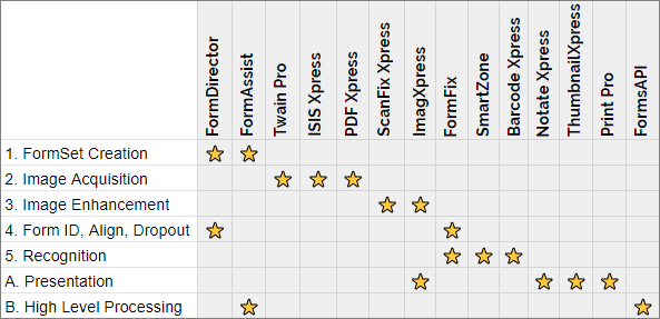 A forms processing workflow can be achieved by using FormSuite. FormSuite is a collection of Accusoft components that together, fully cover a typical forms processing workflow.